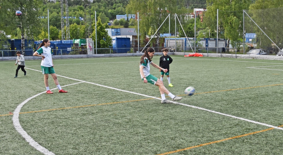 Ayra lærer gutta å ta frispark